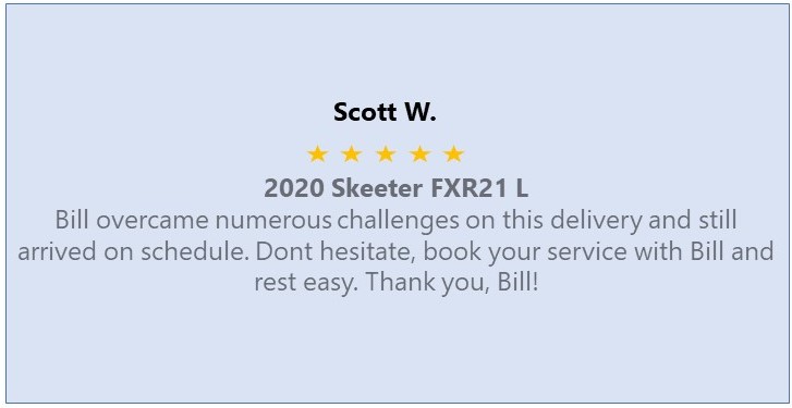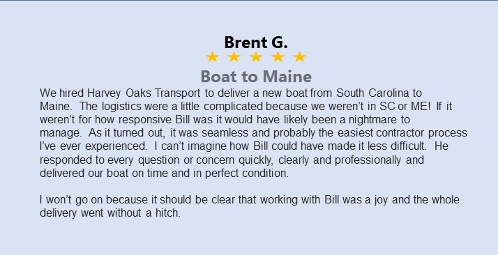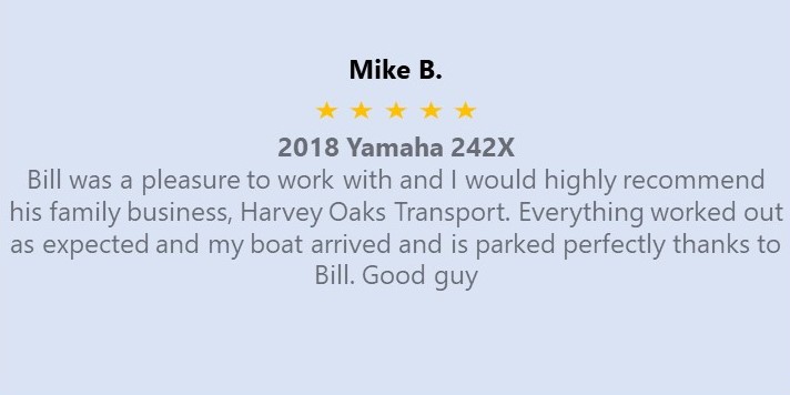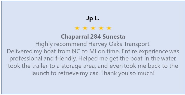 We are a small family owned business dedicated to customer service and satisfaction. We transport your pride and joy, giving you peace of mind with daily updates while the delivery process is in progress, and a call when the delivery is complete. Being a small company, personal service and going the extra step to provide you with the care for your boat or RV trailer is rule one at Harvey Oaks Transport!